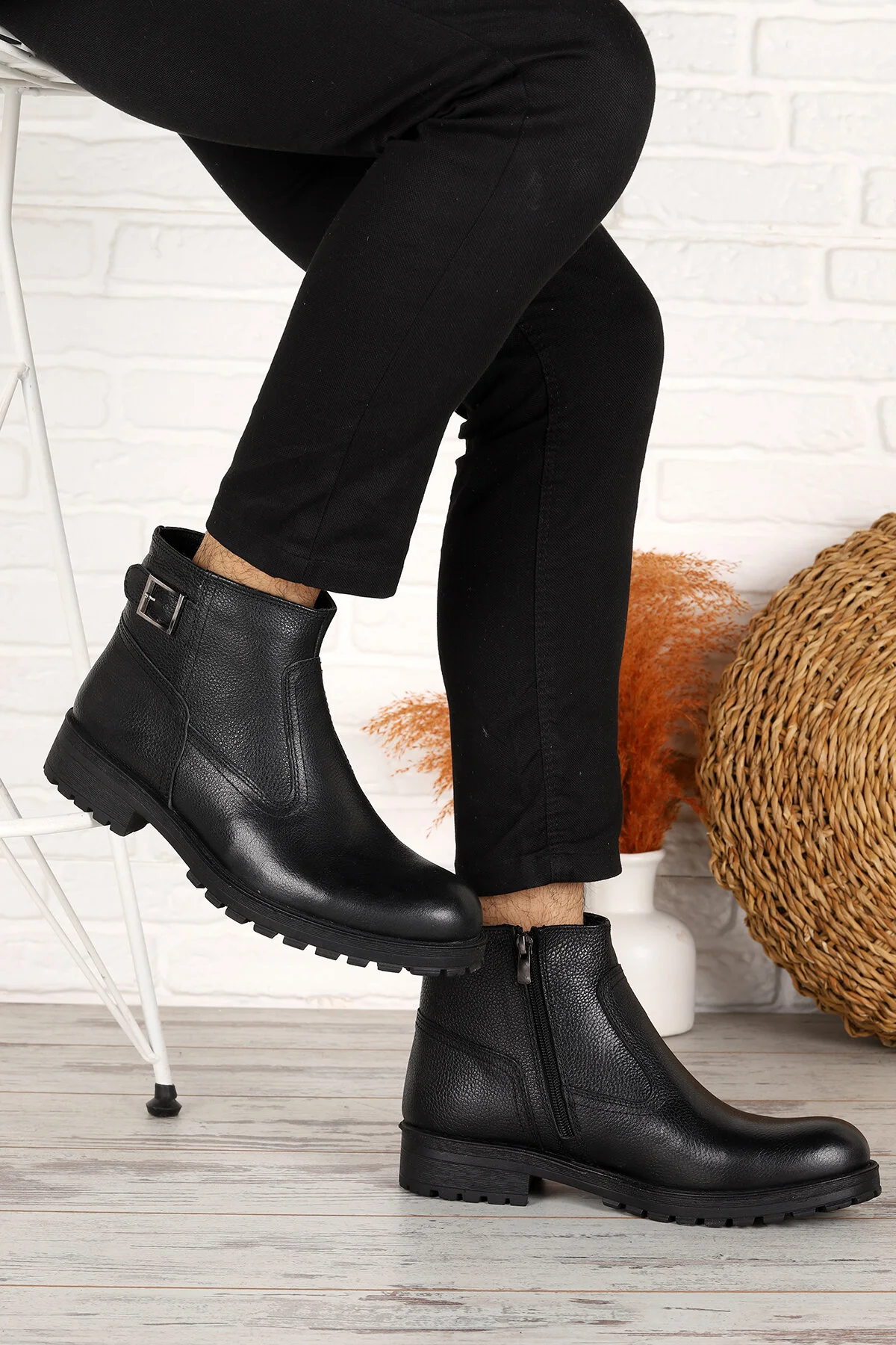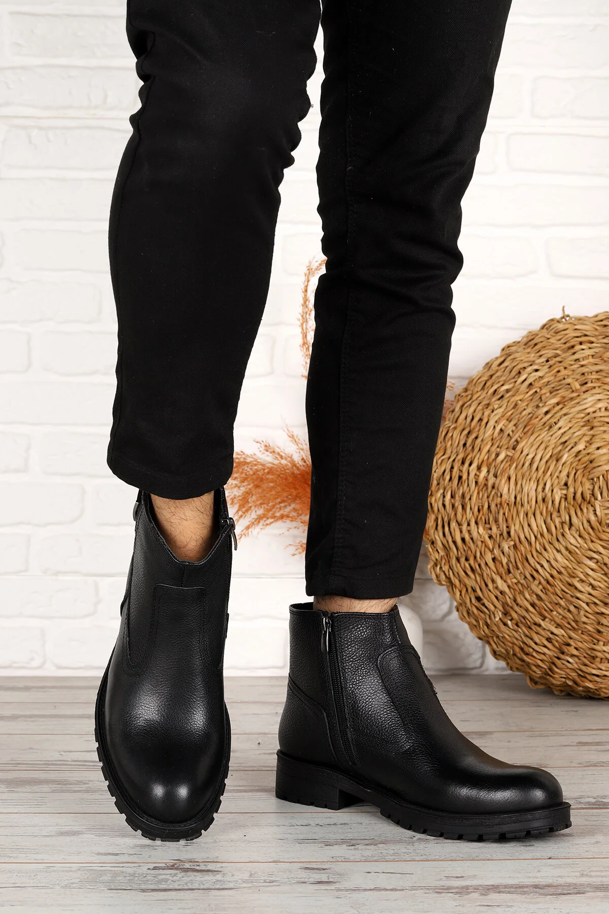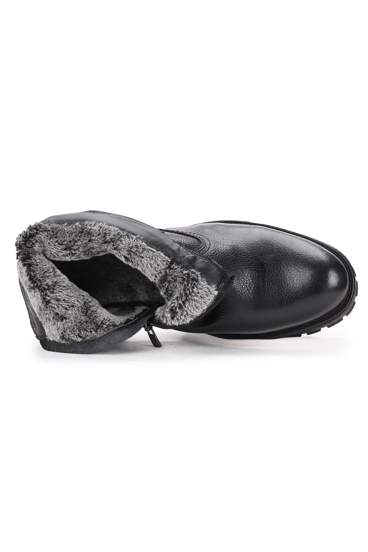 Ayakland Knt 044-1 Leather Men’s Boots Shoes with Fur Inside-Zipper Black – genuine leather